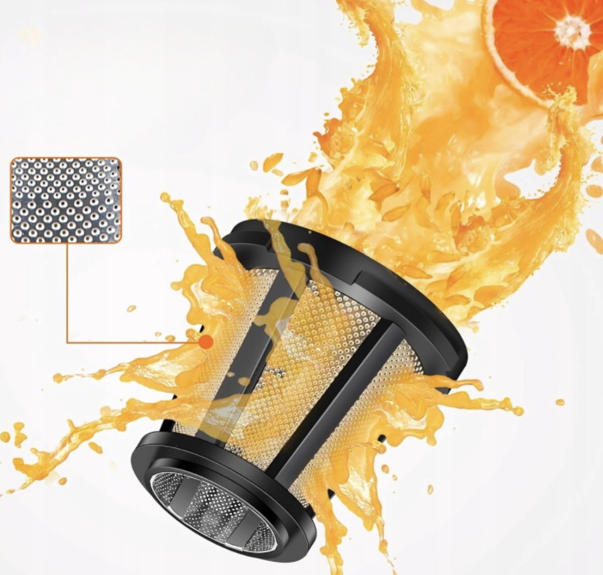 Sokowirówka do warzyw i owoców jest wyposażona w filtr ze stali nierdzewnej z drobną i gęstą siatką, która odpowiednio oddziela sok od wytłoczyn.
