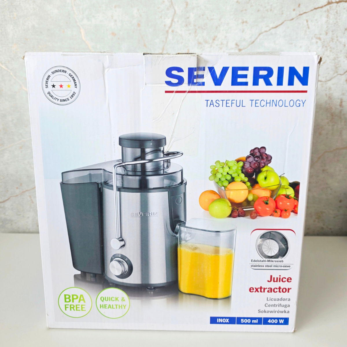 Moc 400 W– świadczy o wydajności i skuteczności sokowirówki elektrycznej SEVERIN.
