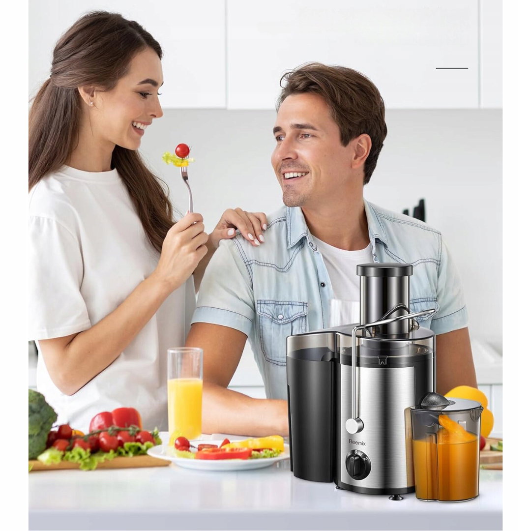 Reemix Sokowirówka do warzyw i owoców, Max Juicer Machine ze stali nierdzewnej z 3-stopniową regulacją prędkości, z szerokim otworem o średnicy 65 mm – sokowirówka odśrodkowa.