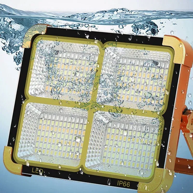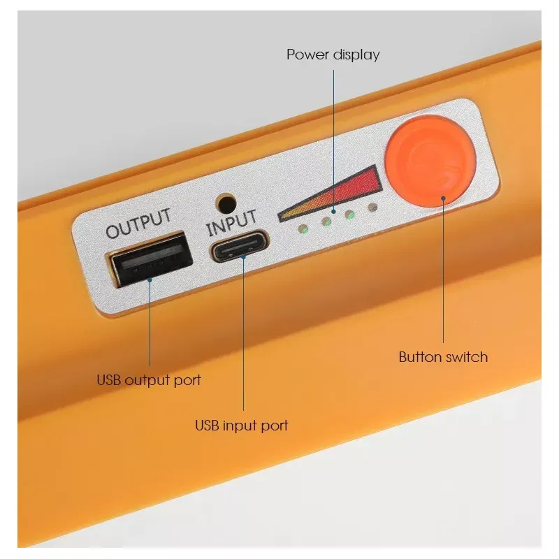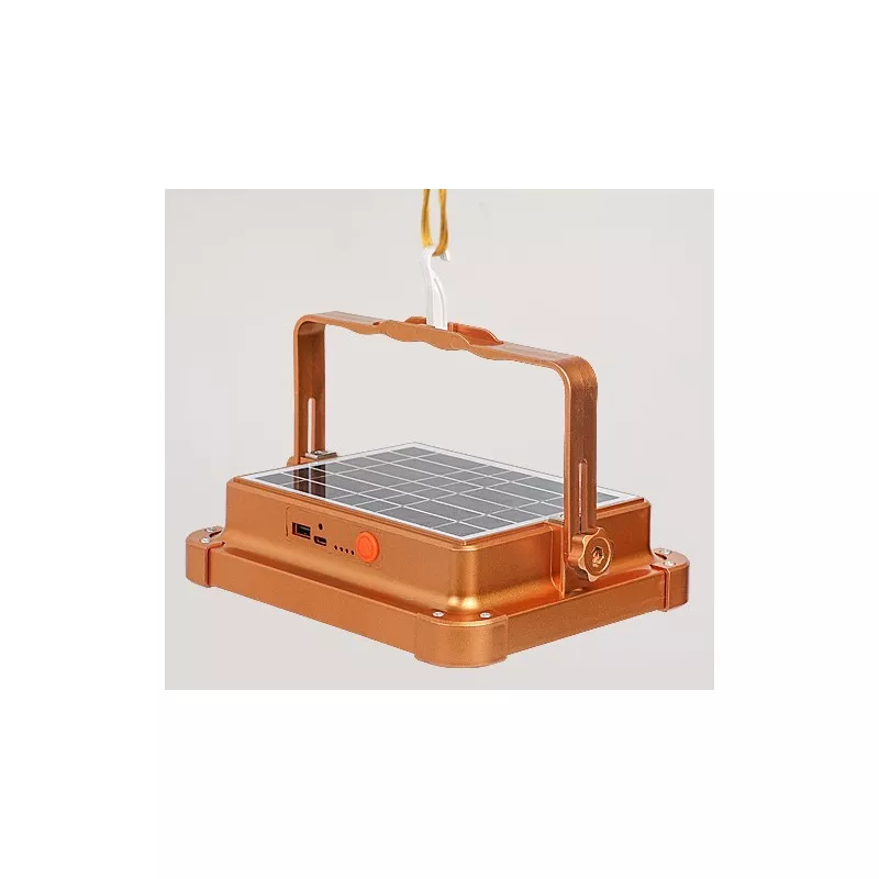 Przenośny halogen oparty na technologii led z możliwością zmiany barwy światła - dostępne ciepła, zimna, neutralna. Stosowany do oświetlenia na zewnątrz jak i wewnątrz, jest odporny na wilgoć i mróz IP66. ładowanya z panela słonecznego lub portu USB każdą ładowarką do telefonu itp. Lampę możemy też wykorzystać jako źródło zasilania i ładowania innych urządzeń - funkcja powerbank. Halogen posiada wskaźnik stanu baterii, magnesy mocujące, haczyk do powieszenia, a rączkę możemy zablokować pod dowolnym kontem co pozwala na dostosowanie konta padania światła. Parametry techniczne: