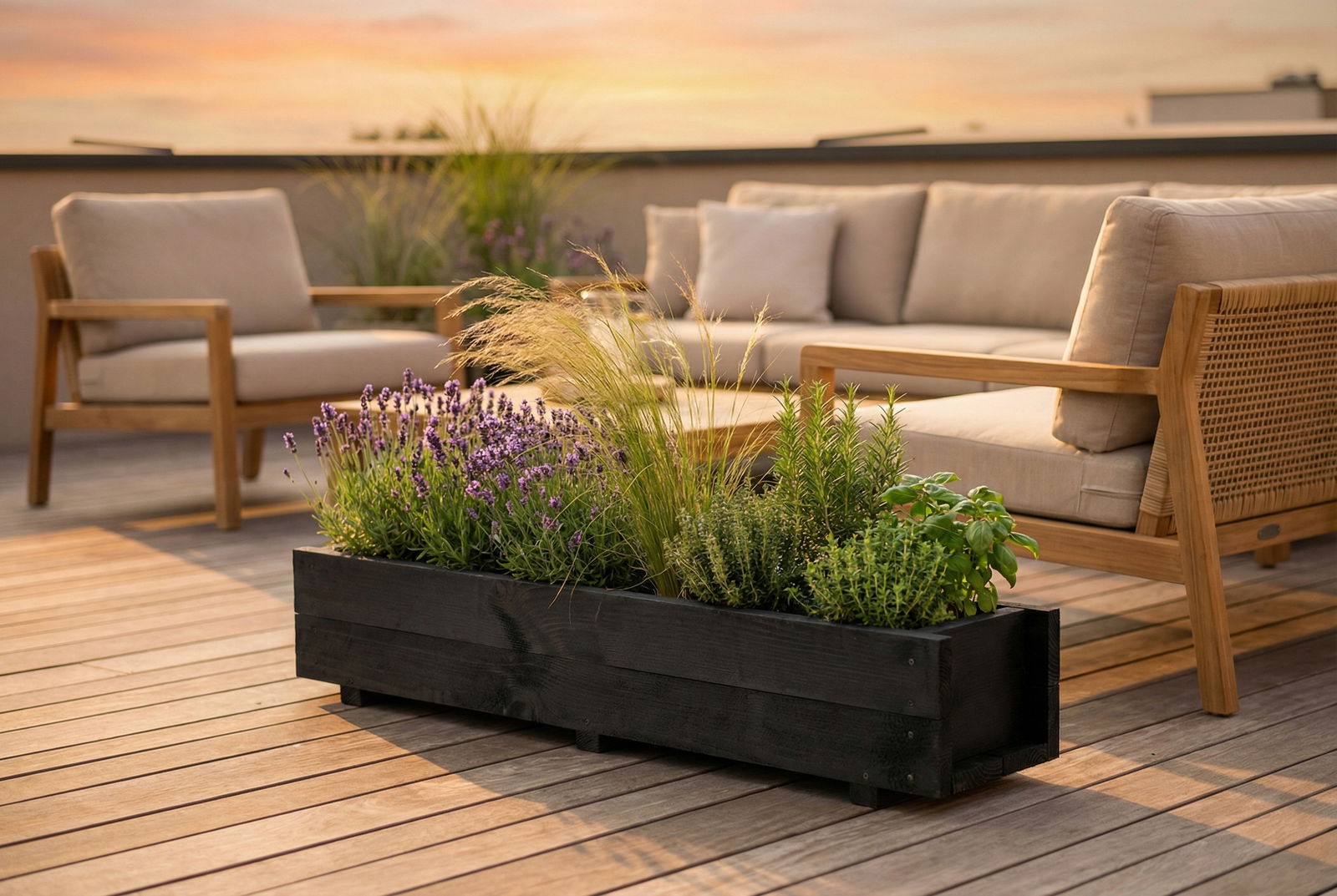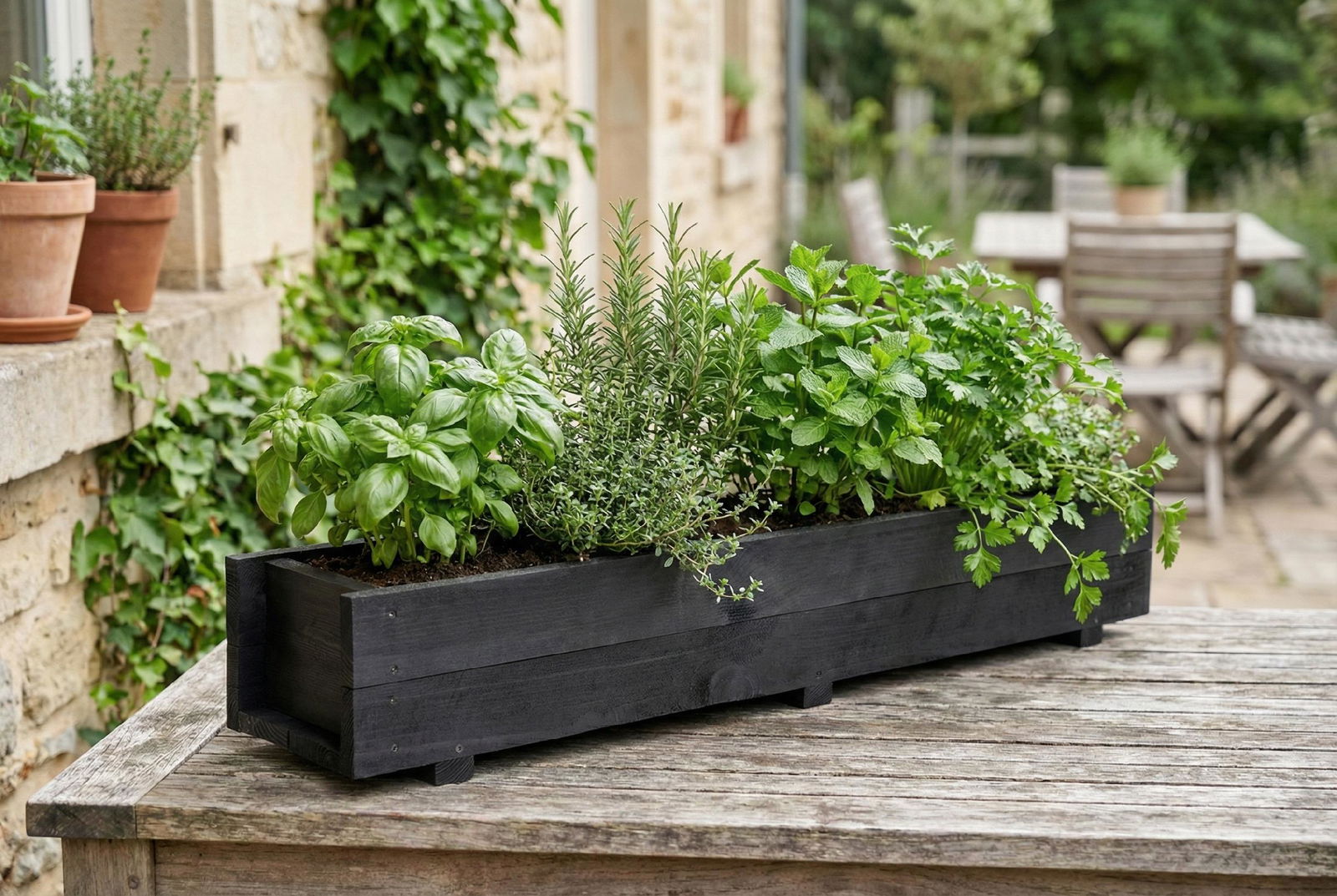 Solidna Donica Drewniana 118 cm – Czarna | Gotowa do Postawienia!