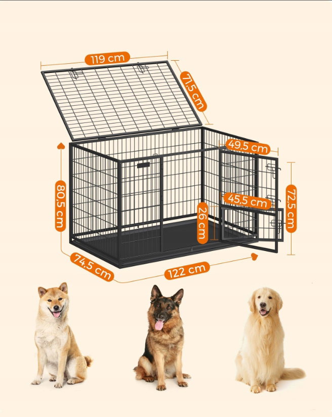 Solidna metalowa klatka dla psów 122 x 74,5 x 80,5 cm FEANDREA PPD003B01V1