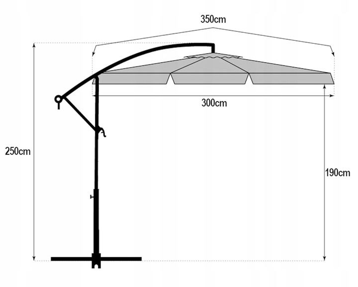 Opis Produktu: Ten duży parasol ogrodowy o średnicy 350 cm z wysięgnikiem to idealne rozwiązanie do ochrony przed słońcem i lekkim deszczem. Wyposażony w system korbowy, umożliwia łatwe składanie i rozkładanie, co zapewnia wygodę użytkowania. Regulacja wysokości oraz kąta nachylenia czaszy pozwala dostosować parasol do zmieniającego się kąta padania słońca. Czasza wykonana z wysokiej jakości poliestru jest odporna na działanie warunków atmosferycznych i wodoodporna, co sprawia, że parasol sprawdzi się nawet podczas drobnych opadów deszczu.