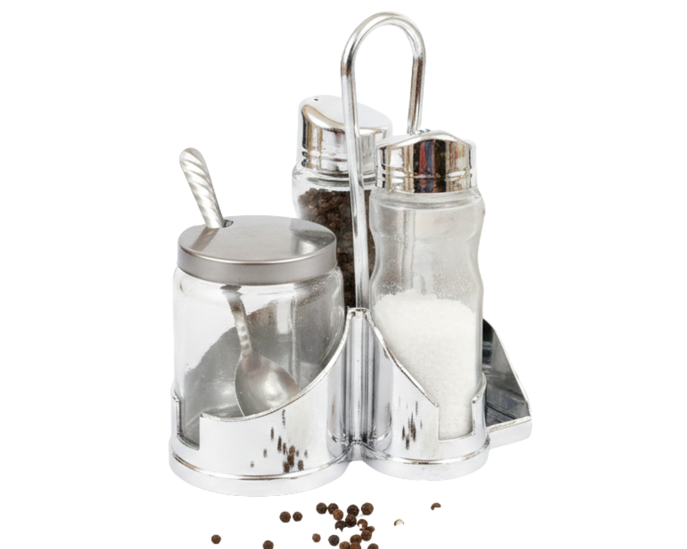 Zestaw Przyprawników 3 el. na Stojaku – Solniczka, Pieprzniczka i Cukiernica / Pojemnik