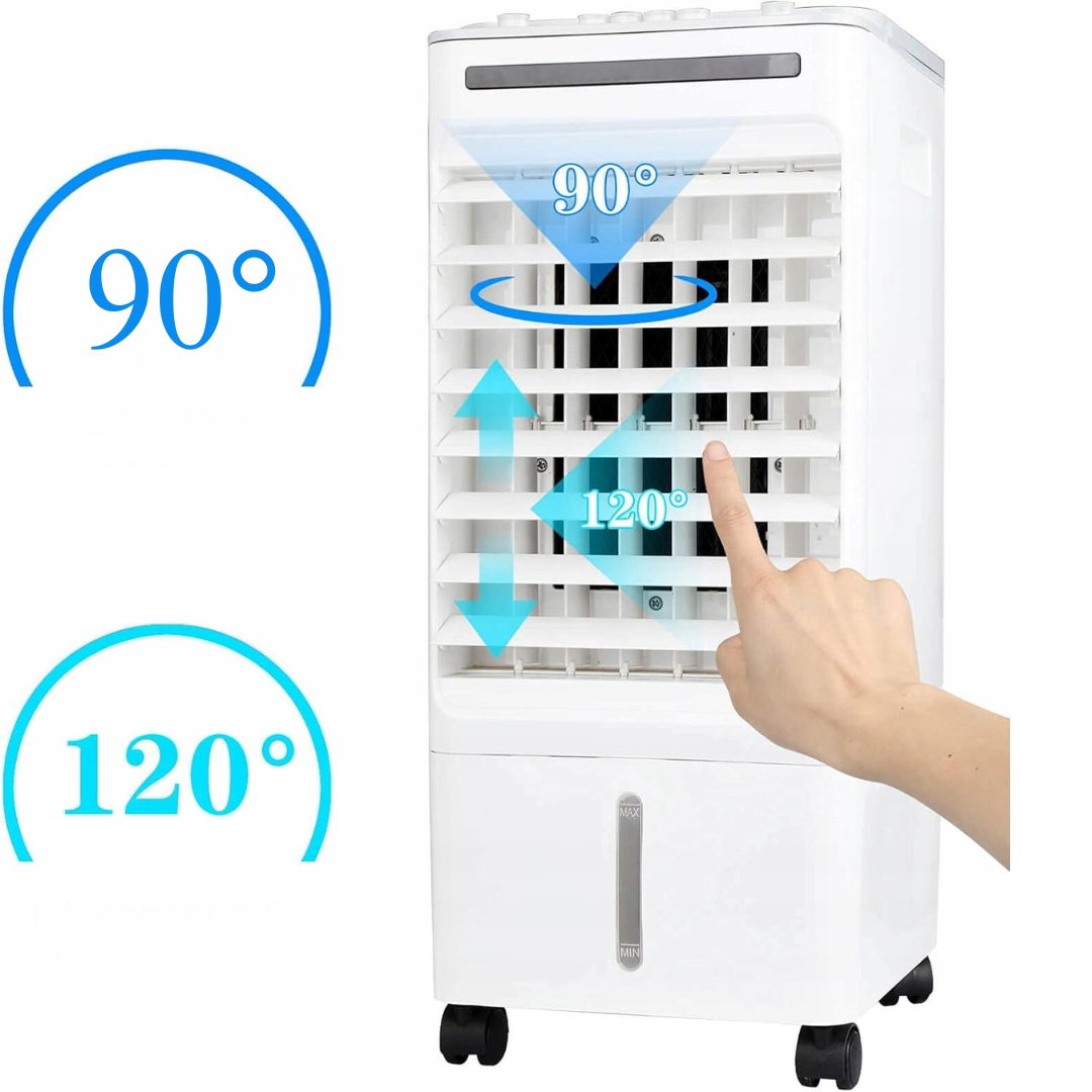 - Zastosowanie: klimator służy do chłodzenia powietrza w upalne dni, tworząc przyjemny i orzeźwiający klimat w pomieszczeniu. Dzięki funkcji nawilżania zapobiega przesuszeniu powietrza, co sprzyja lepszemu samopoczuciu i wspiera zdrowie dróg oddechowych. Dodatkowo oczyszcza powietrze z kurzu i drobnych zanieczyszczeń, poprawiając jego jakość i komfort codziennego użytkowania.