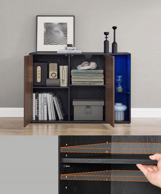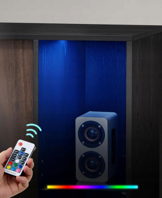 - ✴️【PRZECHOWYWANIE I EKSPOZYCJA】Otwarte przegrody tej komody są wyposażone w oświetlenie RGB sterowane zdalnie na górze. Światło przechodzi przez szklaną półkę, oświetlając przestrzeń do przechowywania przedmiotów i tworząc nastrojową atmosferę.
