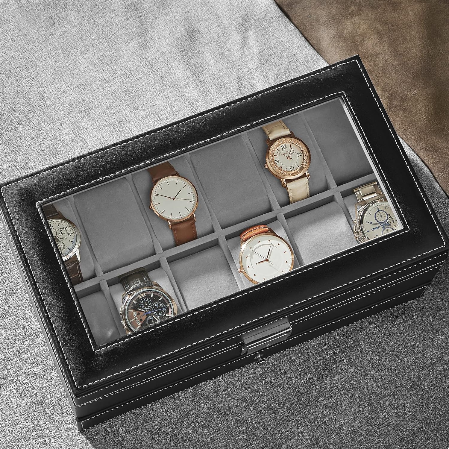- Ponadczasowe klasyczne i eleganckie - dzięki połączeniu czarno-szarego koloru i eleganckiemu wyglądowi to pudełko na zegarki nie tylko spełnia Twoje potrzeby w zakresie przechowywania, ale służy również jako piękny element dekoracyjny