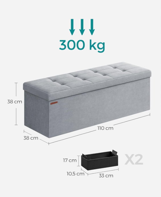 SONGMICS składana ławka ze schowkiem, 38 x 110 x 38 cm LSF277G02