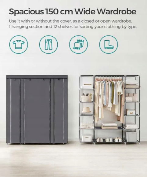 SONGMICS Szafa na ubrania z materiału z 12drążkkami na ubrania LSF03G