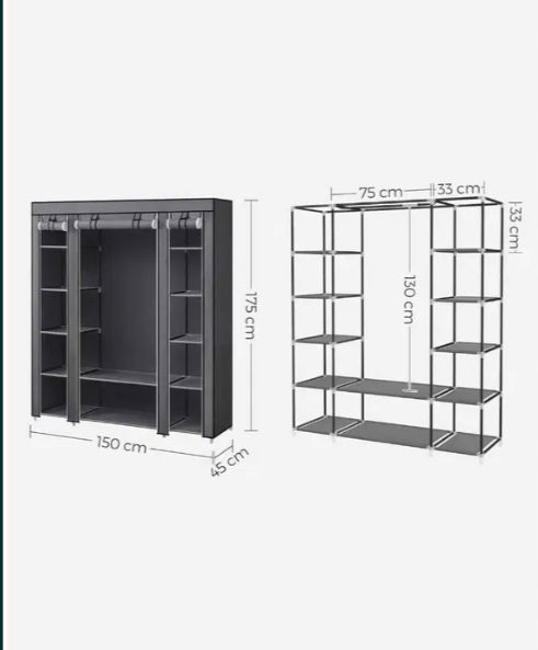 - ✴️[Przestronna] Ta szafa na ubrania ma wymiary 45 x 150 x 175 cm i zapewnia dużo miejsca do przechowywania ubrań i ubrań Twojej rodziny. Wiszące miejsce (wysokość 132 cm) umożliwia zawieszenie również długich ubrań, takich jak płaszcze