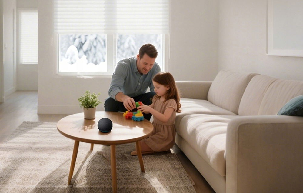 Przełącznik działa lokalnie, nawet jeśli internet chwilowo nie działa. Jeśli korzystasz w domu asystenta głosowego np. Alexa, Siri czy Google Asystent – możesz jednym poleceniem głosowym zasłonić rolety dokładnie na 60% lub całkowicie je odsłonić, bez ruszania się z miejsca.