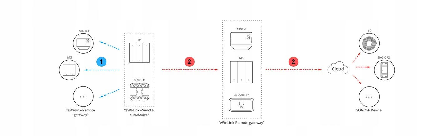 Wystarczy nacisnąć przycisk, aby wywołać inteligentną scenę stworzoną wcześniej za pomocą aplikacji. Gdy dostępne jest połączenie z Internetem, możesz jednym kliknięciem zapalić wszystkie światła w kuchni lub wyłączyć lampki nocne w sypialni. Ponadto jedno urządzenie z funkcją eWeLink Remote gateway może zostać połączone z aż 8 R5! To oznacza, że do obsługi jednej lampy z powodzeniem wykorzystasz większą liczbę przełączników.