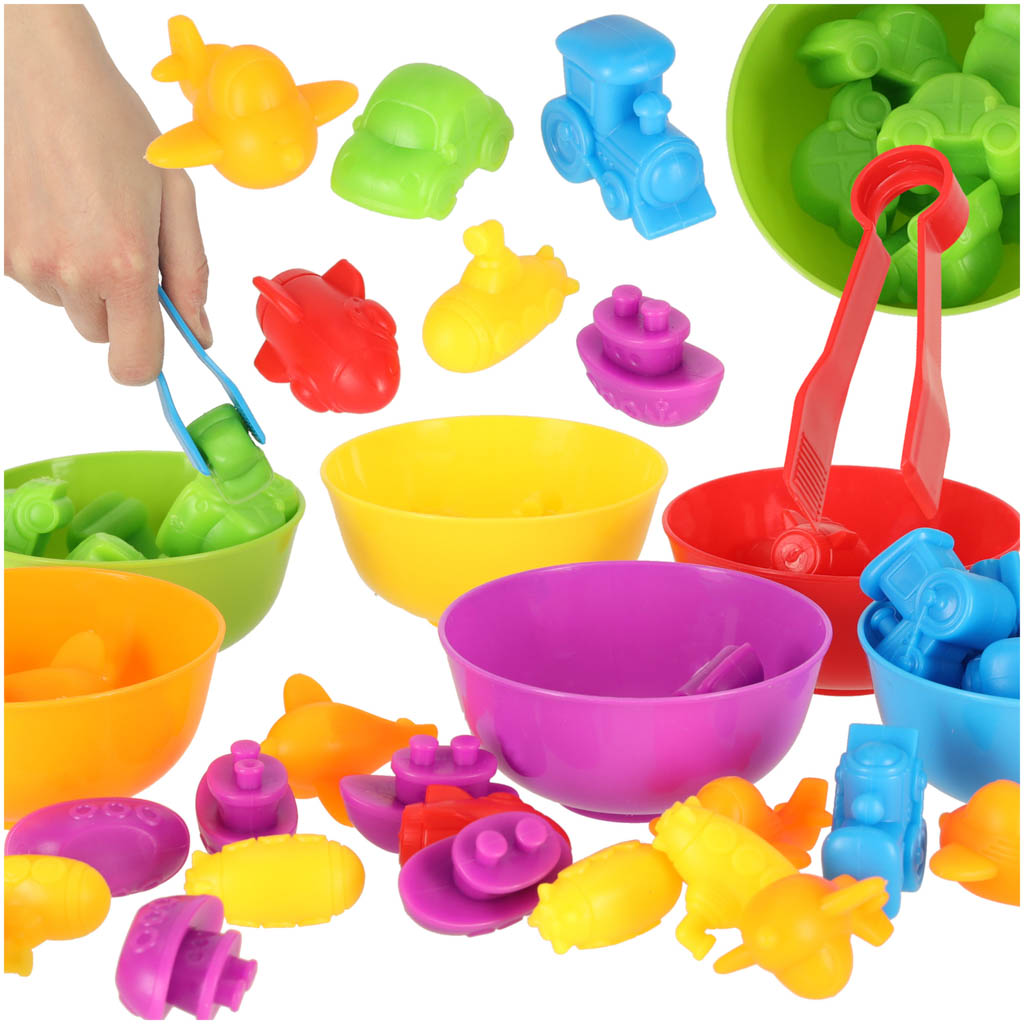 Sorter Montessori Pojazdy Edukacyjne do Nauki Liczenia Kolorów Zestaw 36 el
