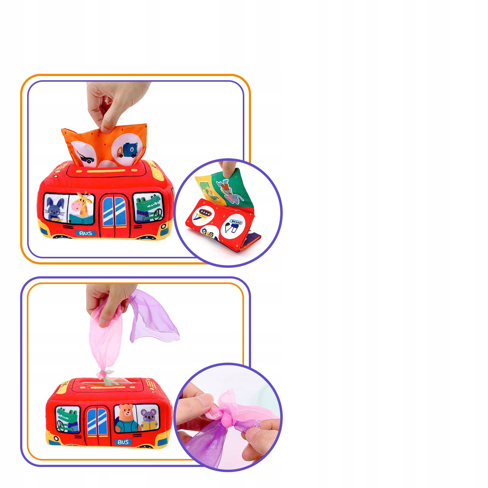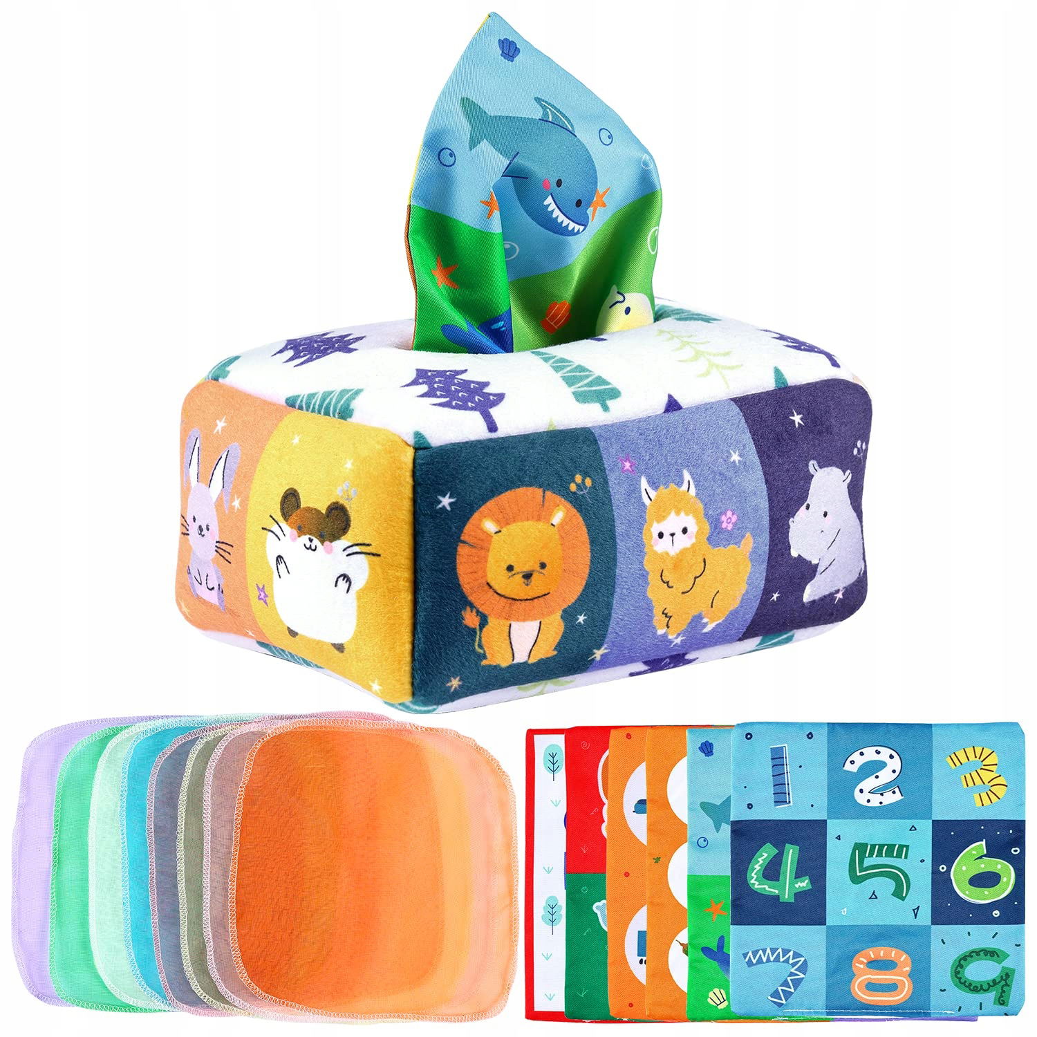 ✔ Wielofunkcyjność – Zabawka doskonała do ćwiczeń sortowania, chowania i wyciągania chusteczek, co wspiera rozwój motoryki małej.