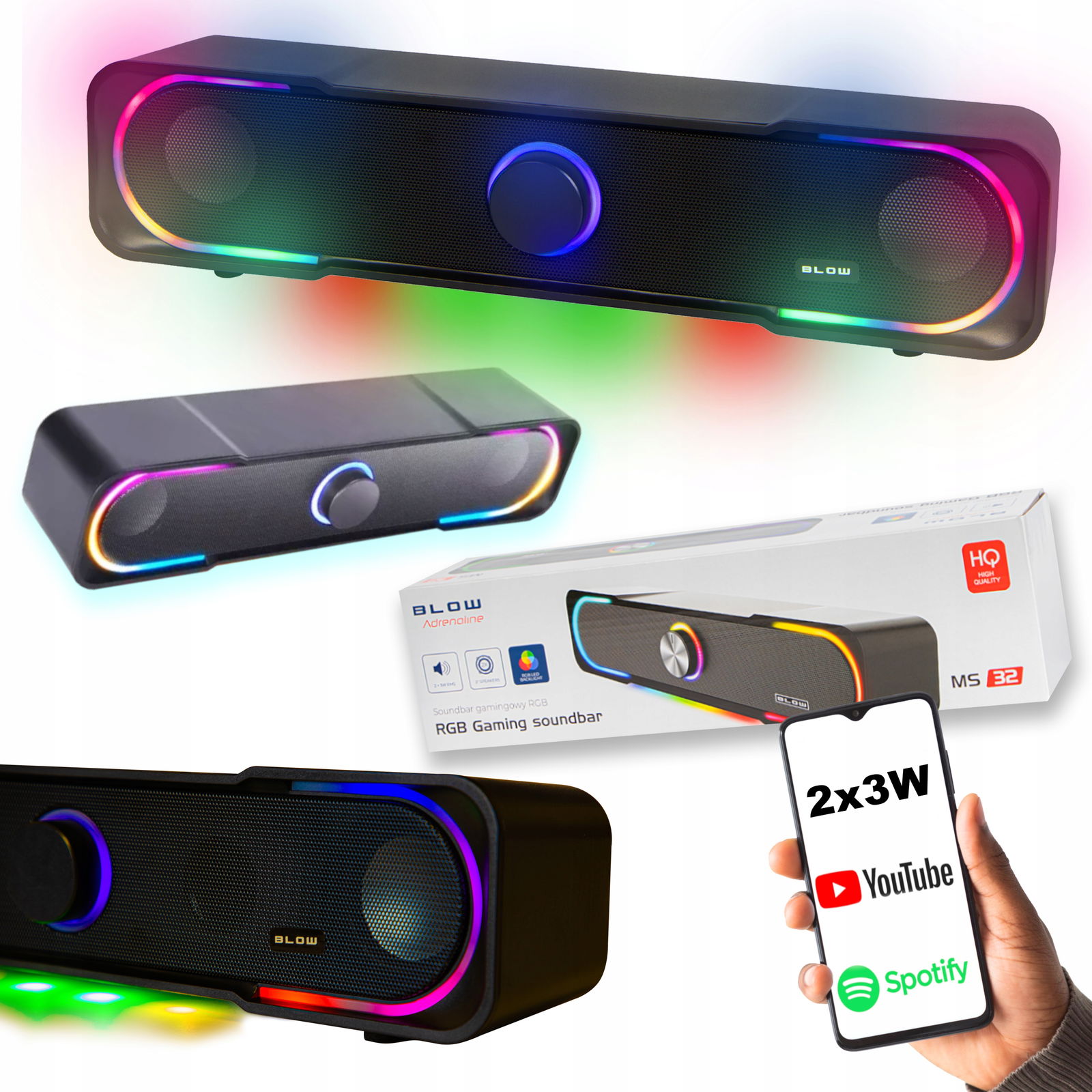 GŁOŚNIK SOUNDBAR GAMINGOWY DO KOMPUTERA MINI JACK 3,5mm AUX USB DC LED RGB