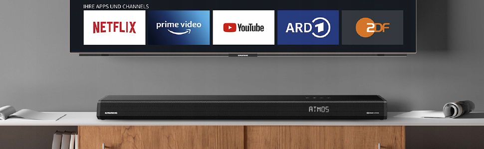 Dzięki fantastycznemu trójwymiarowemu dźwiękowi przestrzennemu i kompaktowej konstrukcji DSB 1000 All-in-One-Dolby Atmos Soundbar firmy Grundig zapewnia pierwszorzędne wrażenia dźwiękowe
