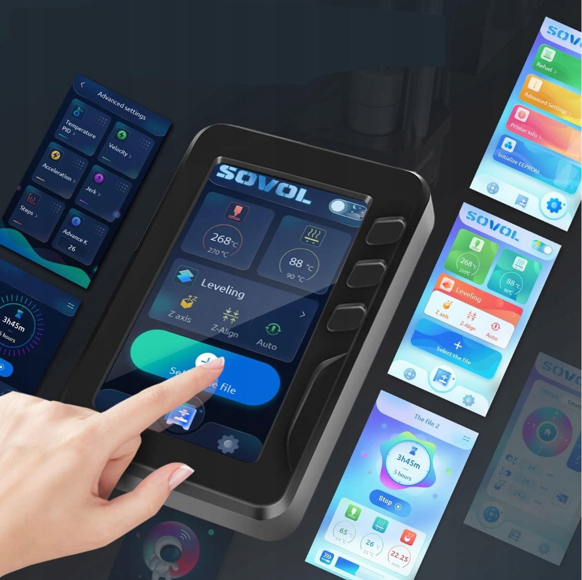 - ✴️[4,3-calowy ekran dotykowy] Tryb dzienny i nocny można przełączać w dowolnym momencie. Unikalny interfejs użytkownika Sovol i czuła reakcja zapewniają lepsze wrażenia niż wyświetlacz przyciskowy.