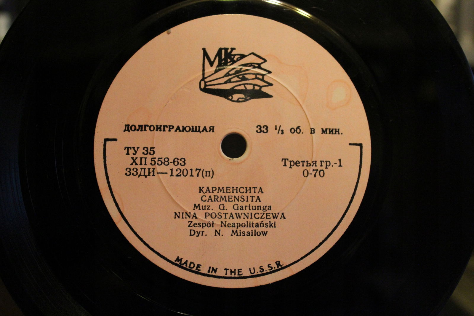 płyta: nie nadaje się do odtwarzania, może nawet być połamana; egzemplarz jedynie dla kolekcjonerów.