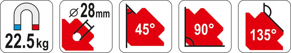 Przeznaczony do czasowego łączenia metalowych elementów podczas spawania, nawiercania, lakierowania, czynności wymagających używania obu rąk. Stosowanie kątownika magnetycznego pozwala na swobodne operowanie obiema rękami i wstępne montowanie łączonych, metalowych elementów bez pomocy dodatkowej osoby.