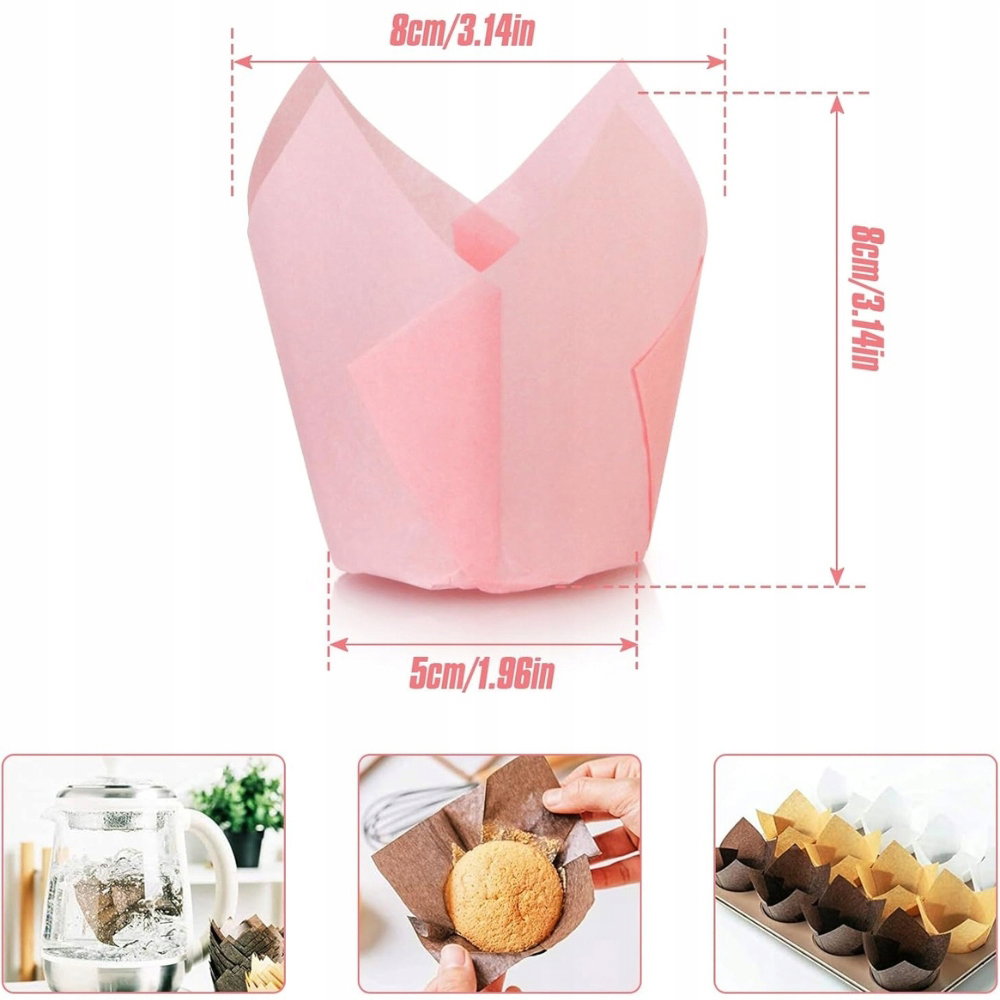 ✨Spesh 100x Tulipanowe Foremki do Muffinek – Różowe, Papierowe, Premium✨