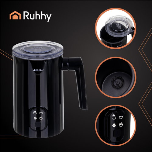 - Spieniacz do mleka RUHHY to eleganckie i funkcjonalne urządzenie, które pozwala przygotować gęstą, kremową piankę jak z kawiarni w kilka sekund. Dzięki dwóm trybom podgrzewania (65°C i 75°C) oraz pojemności 160 ml do spieniania i 350 ml do podgrzewania świetnie sprawdzi się zarówno do cappuccino, latte, jak i gorącej czekolady. Powłoka nieprzywierająca, prosta obsługa jednym przyciskiem i obrotowa podstawa 360° zapewniają wygodę użytkowania i łatwe czyszczenie.