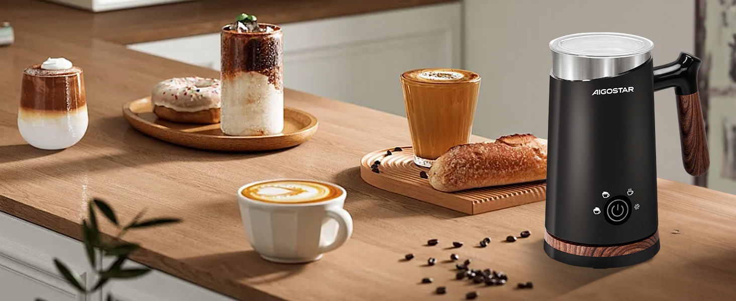 Spieniacz do mleka Aigostar B30LR6 to wielofunkcyjne urządzenie, które pozwala w kilka minut przygotować idealną piankę do cappuccino, delikatne mleko do latte, gorącą czekoladę czy zimną piankę do kawy mrożonej. Wyposażony w cztery tryby pracy i pojemność do 300 ml, sprawdzi się zarówno w domowej kuchni, jak i w biurze. Dzięki powłoce nieprzywierającej, stalowej wkładce i oddzielnej podstawie czyszczenie i użytkowanie są wyjątkowo wygodne i bezpieczne.