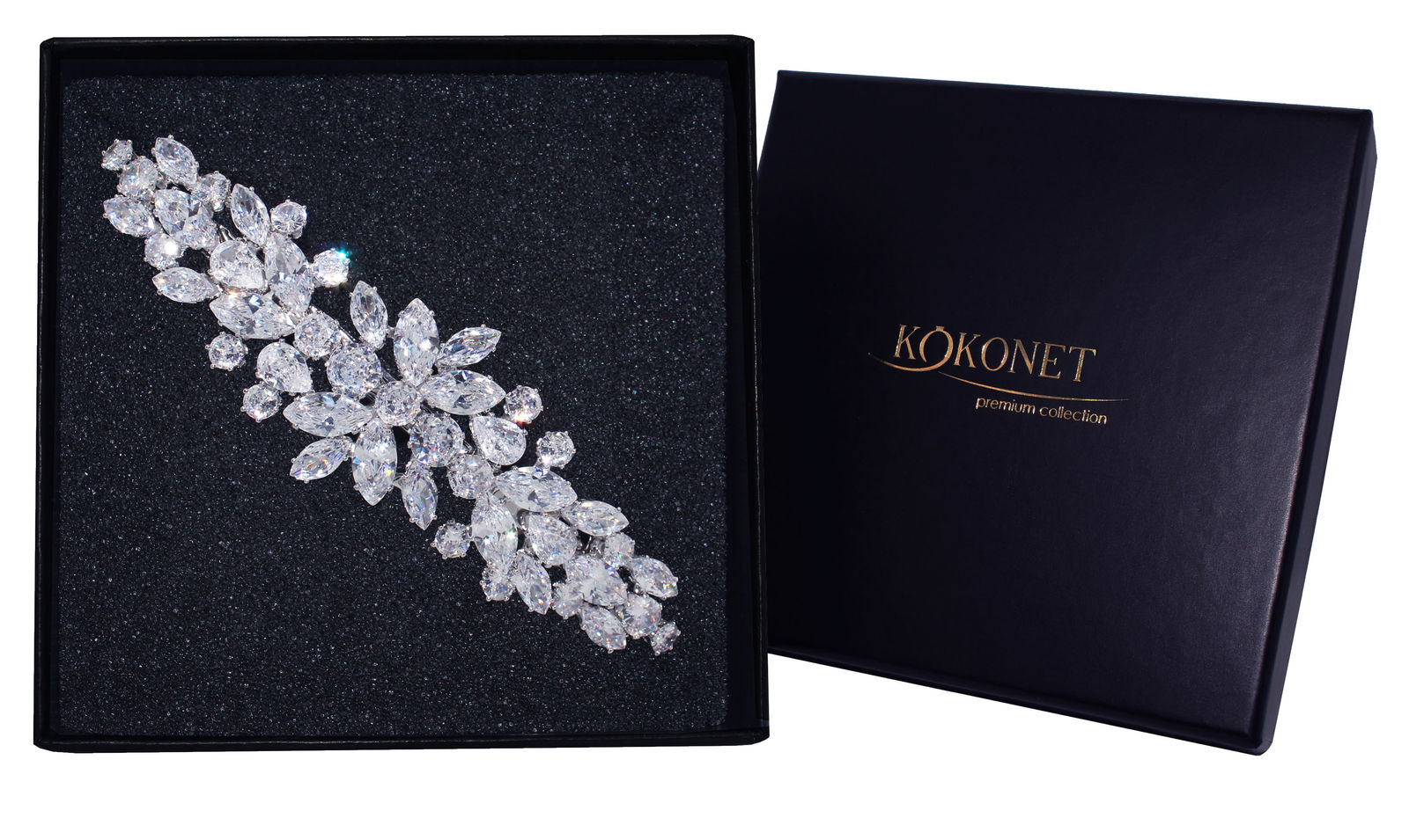 Biżuteria ślubna KOKONET premium collection wykonana jest ze specjalnie zaprojektowanego stopu jubilerskiego, tak aby najdłużej zachować swój piękny wygląd, oraz aby była hipoalergiczna. Biżuteria marki KOKONET nie zawiera w składzie niklu, kadmu, ołowiu oraz litu. Kupując oryginalny produkt Naszej marki otrzymasz certyfikat autentyczności i roczną gwarancję jakości. Każde zamówienie pakujemy również w elegackie pudełeczka, tak więc jest to gotowa propozycja na prezent. Zapraszamy do wirtualnych, bezpłatnych konsultacji w zakresie dobioru biżuterii do stylizacji - na zamówienie możemy również wykonać ozdobę do włosów według Twojego projektu...