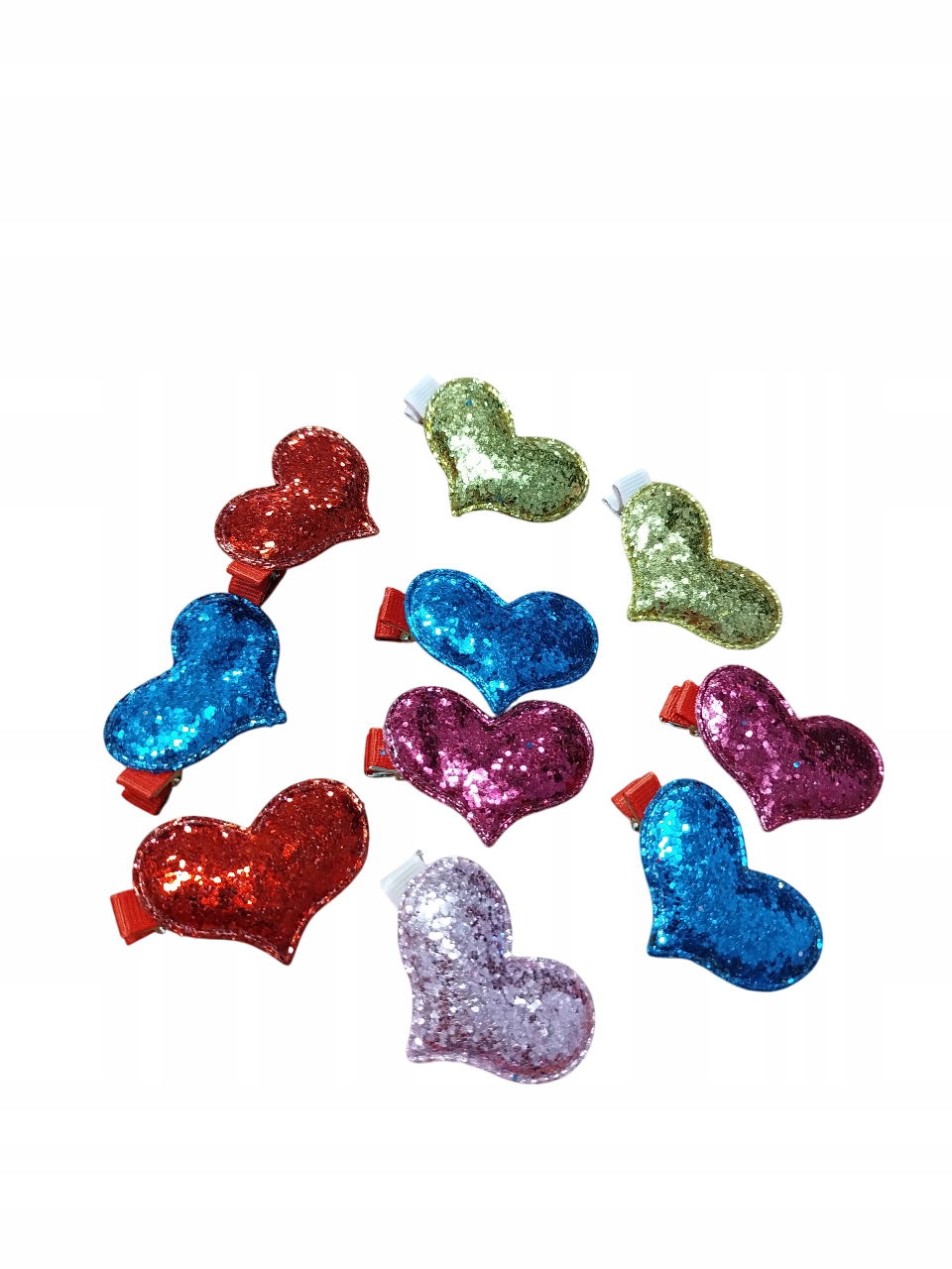 Zestaw spinek w kształcie serduszek, ozdobionych mieniącymi się cekinami, idealnych do różnych stylizacji, zarówno na co dzień, jak i na wyjątkowe okazje.