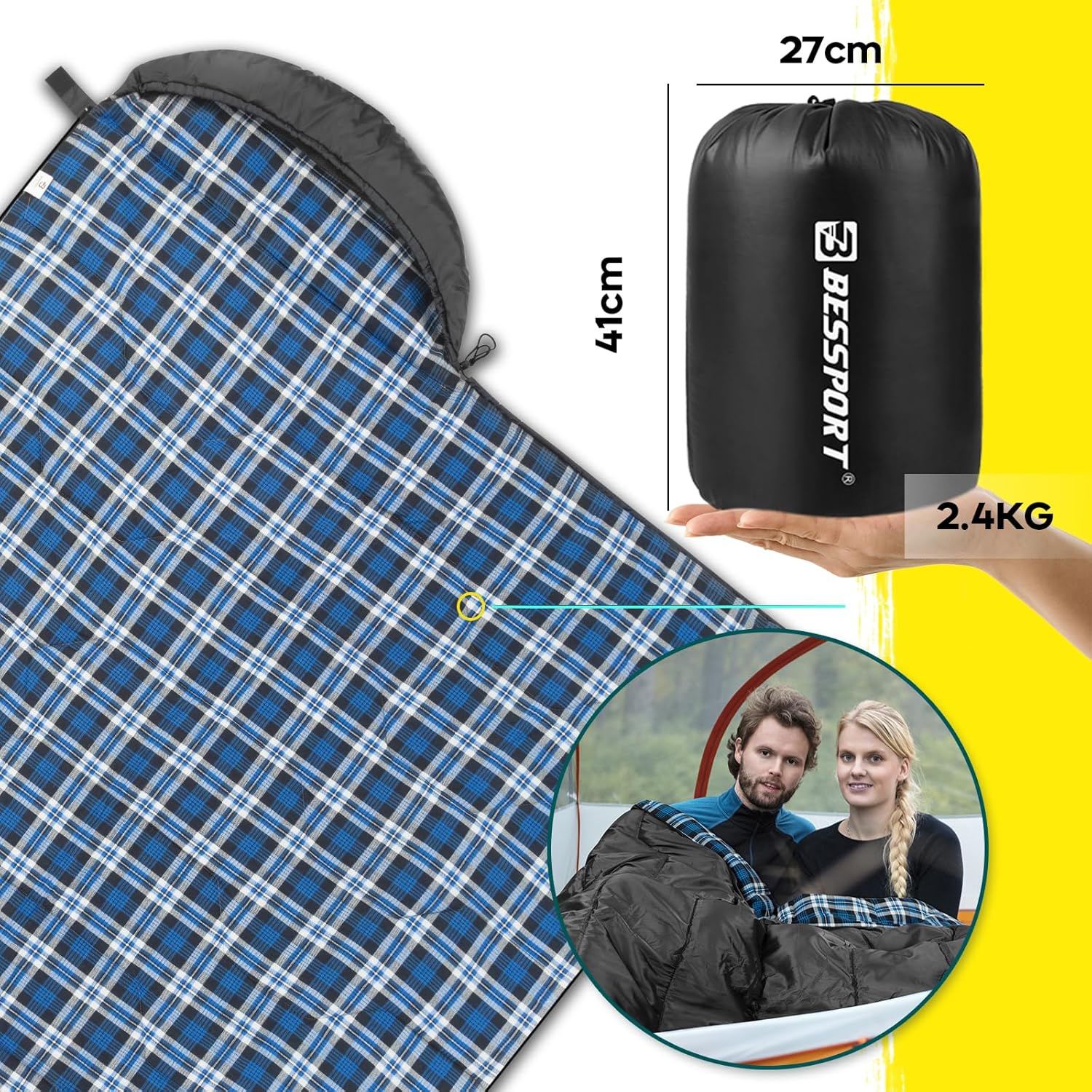 - Luźny i przenośny Rozmiar flanelowego śpiwora wynosi 210 x 80 cm. Te śpiwory są niesamowicie przestronne dla każdego dorosłego o wzroście 195 cm lub mniejszym, idealne dla wysokich mężczyzn i osób śpiących aktywnie, śpiących na boku, które lubią się ruszać. Worek kompresyjny waży zaledwie 2,4 kg, jest bardzo kompaktowy i łatwy do przenoszenia.