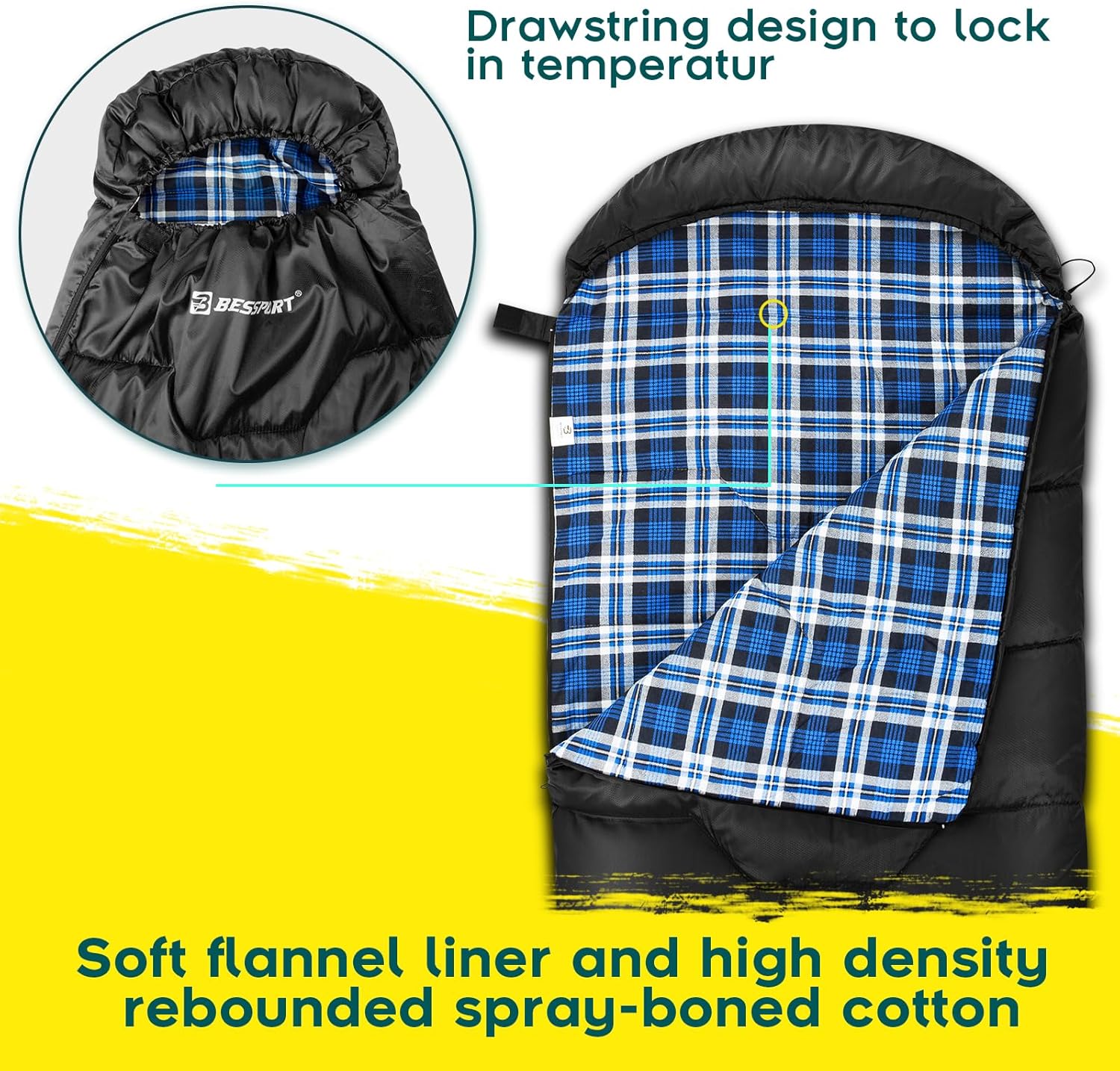 - Zakres temperatur: podszewka flanelowa jest bardzo ciepła, dolna granica ok. 18°F/-8°C i dla zakresu temperatur 28-50°F/-2-10°C. Idealna do utrzymywania ciepła i spokojnego snu w ekstremalnych warunkach.
