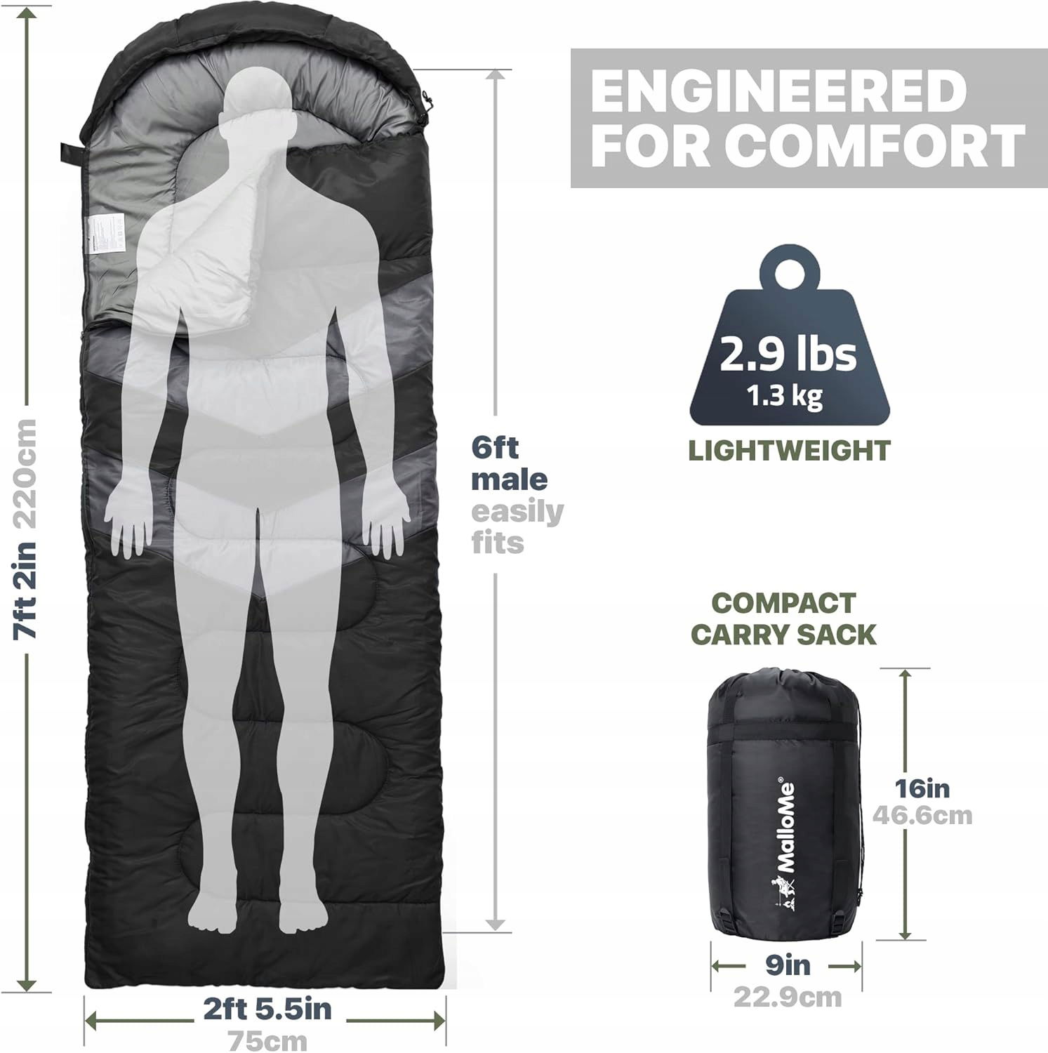Śpiwór MalloMe zapewni komfortowy sen na świeżym powietrzu dzięki wodoodpornej dwuwarstwowej konstrukcji i trwałemu materiałowi poliestrowemu. Idealny dla miłośników przygód i relaksu na łonie natury.