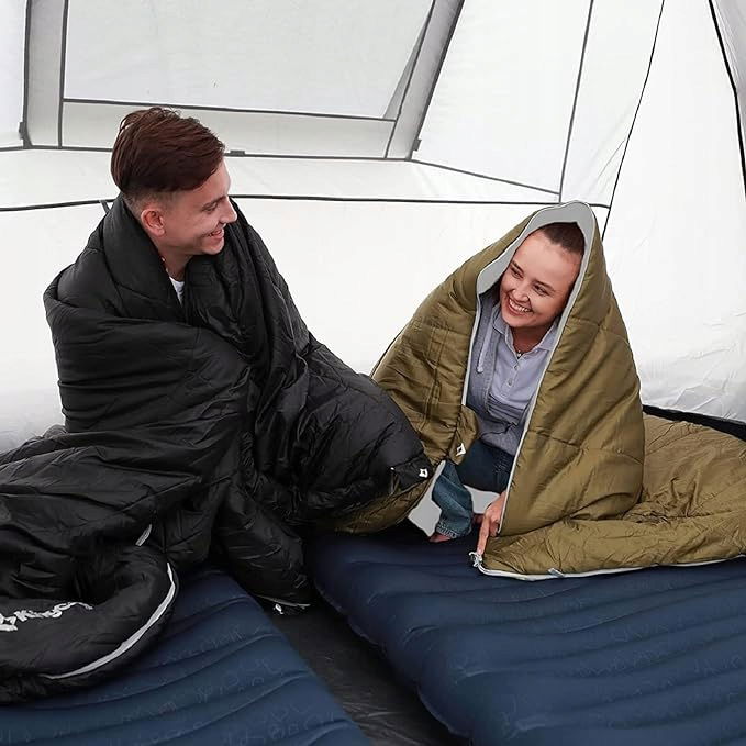Wygodny i trwały: Śpiwór jest wygodny i trwały, z wysokiej jakości zewnętrzną i wewnętrzną podszewką zapewniającą komfortową temperaturę od 7 do 12 stopni C. Nawet w ekstremalnych temperaturach (nie niższa niż -3 stopnie C), może również utrzymać ciepło i chronić ciało z dala od zimnej pogody.