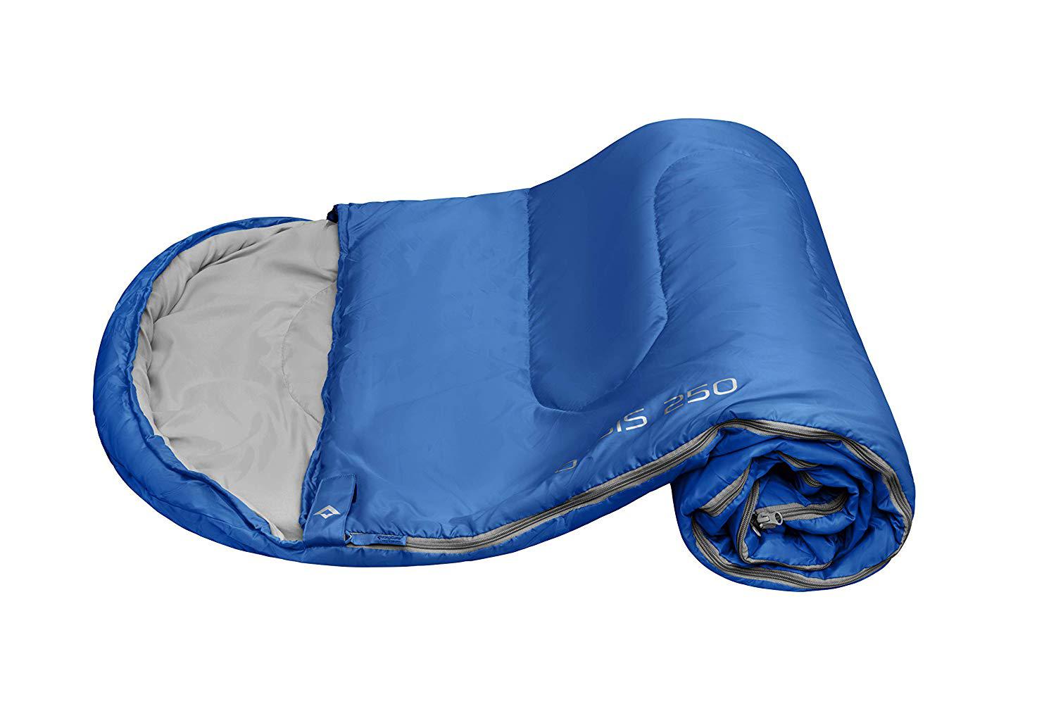 Ciepły śpiwór: Nadal martwisz się o to, że Twój bliski będzie na kempingu w zimną noc? Dzięki wypełnieniu w 100% z poliestru Comfort Loft 250 g/m² śpiwór jest wodoodporny i utrzymuje ciało w dobrej izolacji od zimnej ziemi. Kaptur półokrągły z regulowanymi sznurkami może ładnie chronić głowę i szyję, zapobiegając przedostawaniu się wilgoci.