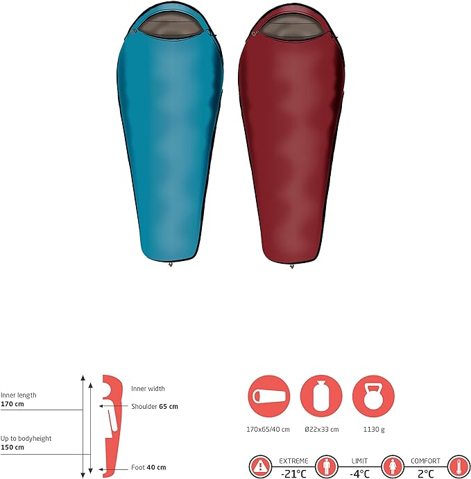 Dopasowany, a jednocześnie wygodny krój zapewnia szybkie ciepło, równie wygodny jak kaptur kurtki i można go zapiąć. Zatrzymuje ciepłe powietrze w śpiworze. Lekka i zajmująca mało miejsca. Odporny na rozdarcia materiał zewnętrzny wodoodpornego śpiwora - Miękka, szybkoschnąca wyściółka - Otwiera się do zamkniętej części stopy