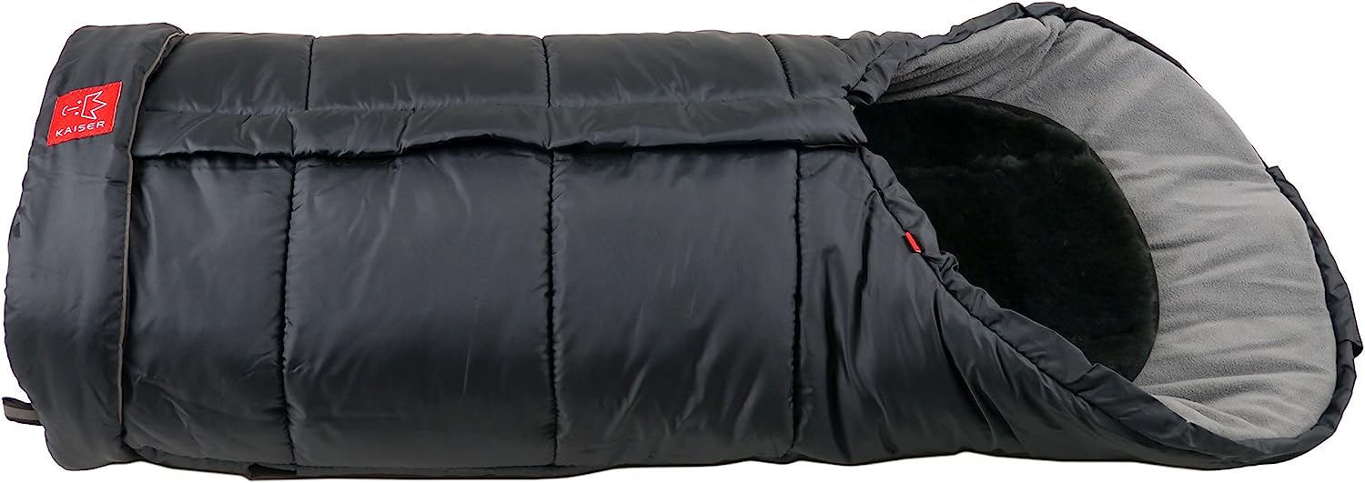 Praktyczny śpiworek termiczny z polarową wyściółką i wyjmowaną wkładką z owczej skóry na chłodne i nieco cieplejsze dni. Wyściółkę z owczej skóry można stosować osobno do wózków i fotelików dziecięcych. Zewnętrzna powłoka Techno jest wodoodporna i wiatroodporna, aby zapewnić dziecku komfort. Dolną część można odpiąć za pomocą zamka błyskawicznego dookoła, co pozwala na dłuższe nogawki lub zabłocone buty. Część wokół głowy można zaciągnąć sznurkiem. Gumkowaty materiał z tyłu zapobiega zsuwaniu się