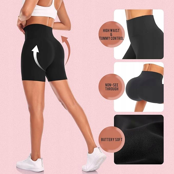 3-pak damskich spodenek , krótkie legginsy, spodenki z wysokim stanem, spodnie sportowe, krótkie, do jogi, do biegania.Czarny, morelowy, biały, rozmiar SM