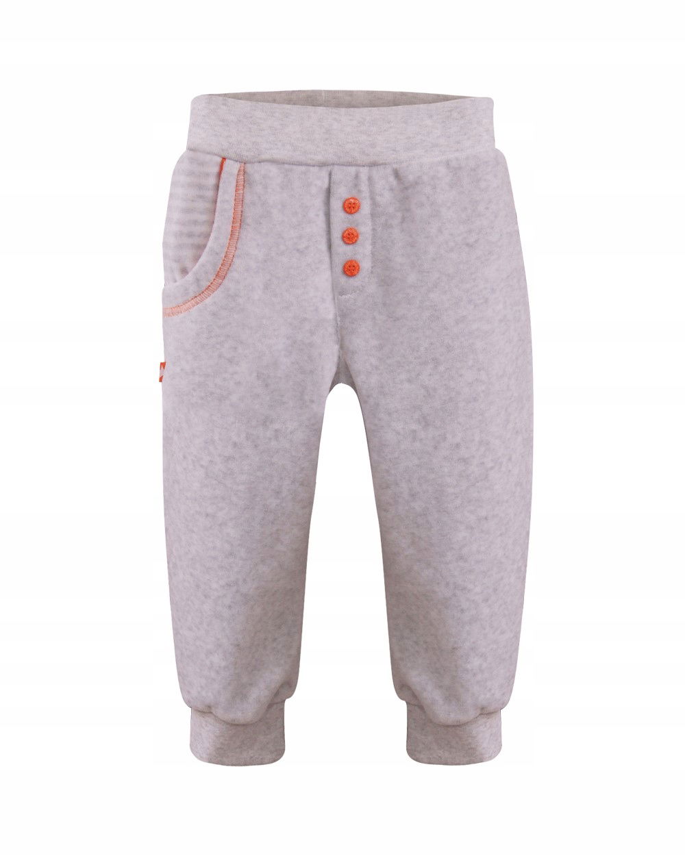 Uszyte z wysokogatunkowego, miękkiego i przyjemnego w dotyku materiału .W pasie ściągacz, który nie uciska brzuszka dziecka. Nogawki zakończone mięciutkimi ściągaczami. Plastikowy guziczki u góry spodni.