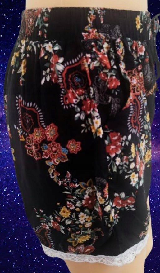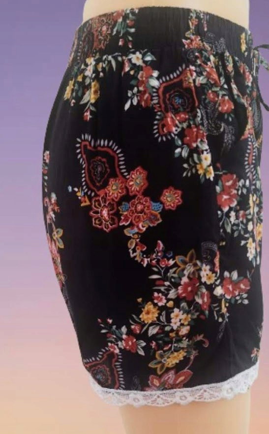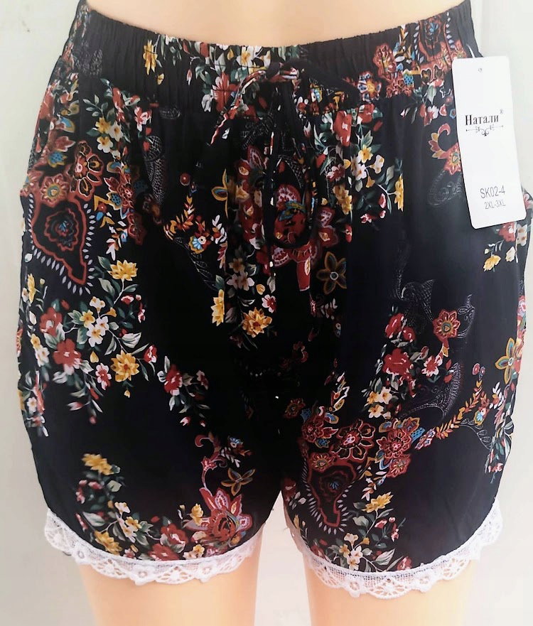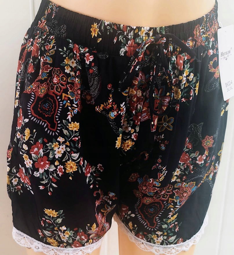 Jedyna sztuka Spodenki z koronką szorty damskie duże z kieszeniami r 2/3XL w kwiatki