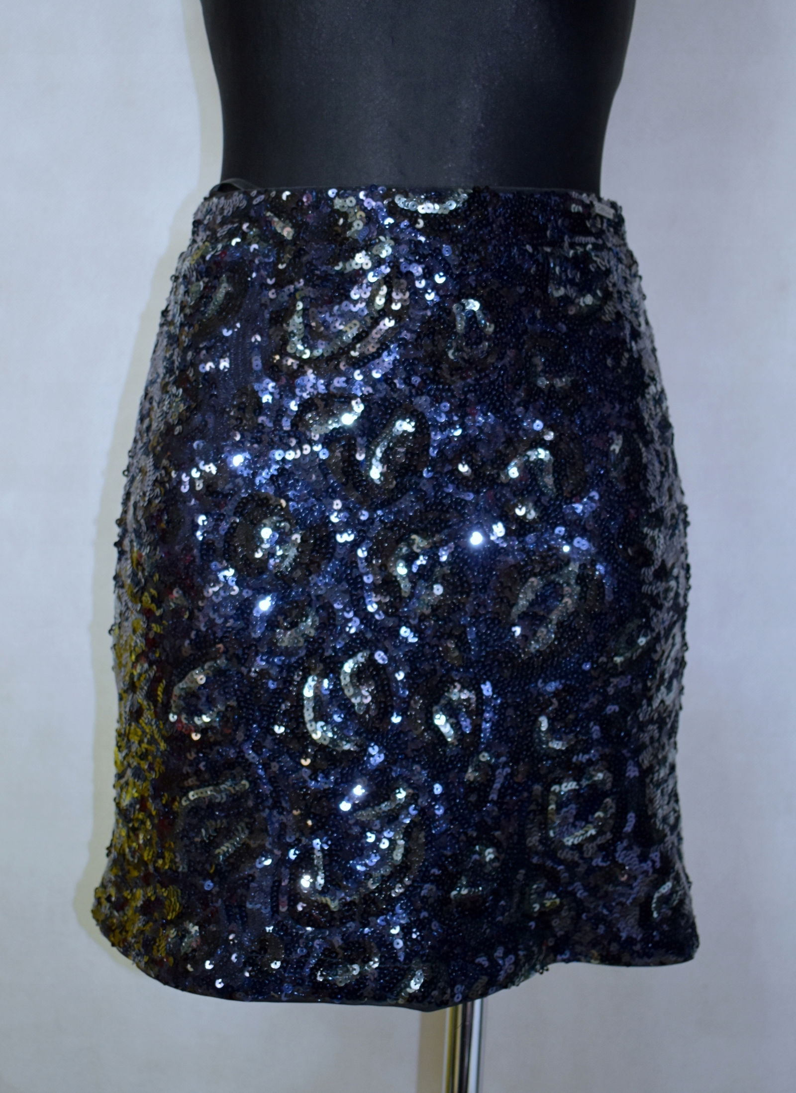 Przygotuj się na wyjątkowe okazje z tą elegancką i stylową spódnicą marki Guess. Wykonana z materiału cekinowego w kolorze granatowym, ta spódnica dodaje blasku i szyku każdej stylizacji.
