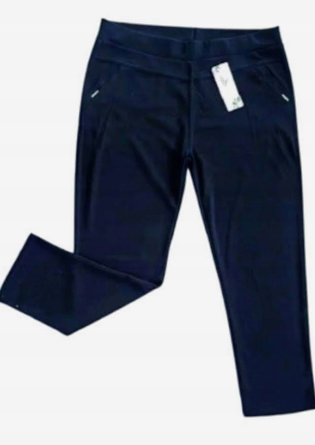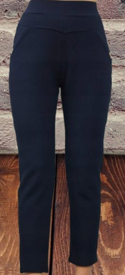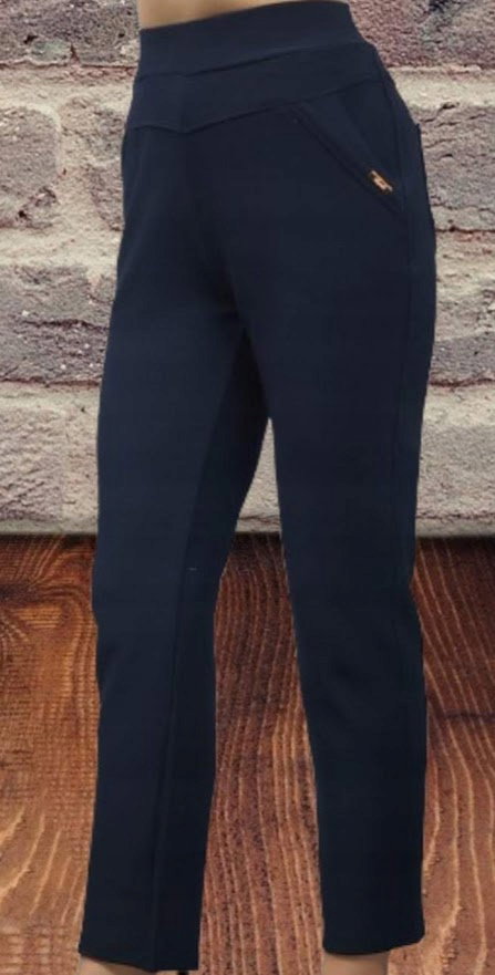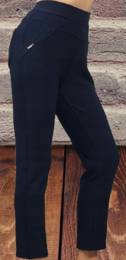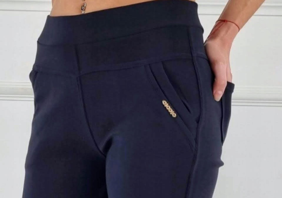 Spodnie damskie wykonane z wysokogatunkowych materiałów. Są miękkie i przyjemne w dotyku. W pasie posiadają wygodną, elastyczną gumę. Nogawki delikatnie zwężają się ku dołowi. Z boku posiadają kieszenie.