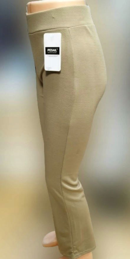 Spodnie damskie elastyczne HIT wzorek bawełna wysoki stan 2/3XL BEŻOWE