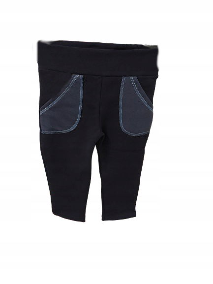 Spodnie posiadają kieszonki po wewnętrznej stronie uda. W pasie guma nie uciskająca brzucha dziecka.