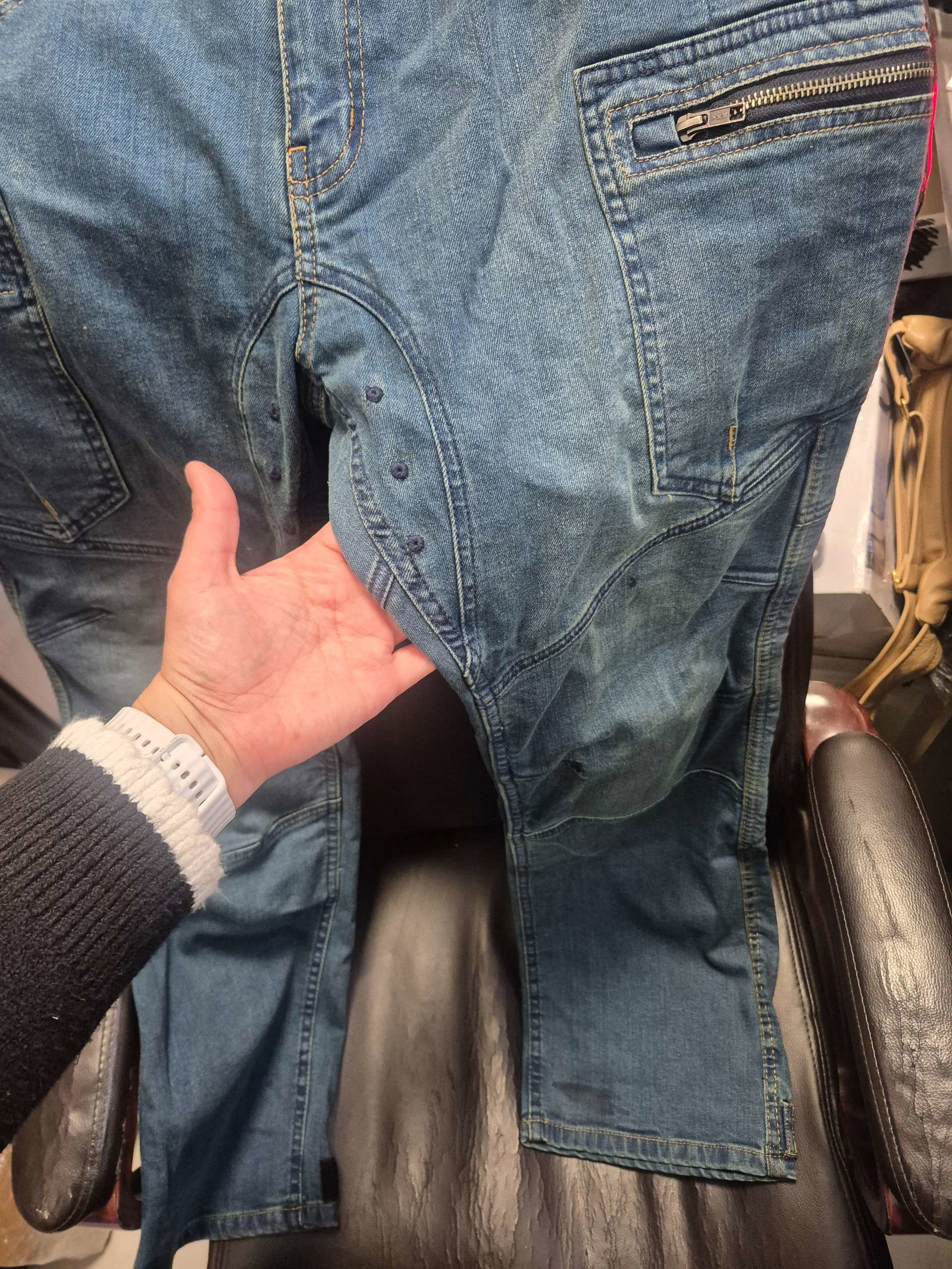 ✅ Podszewka: Trwała i ochronna linia materiału na kolanach, biodrach i talii