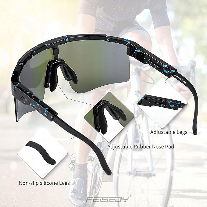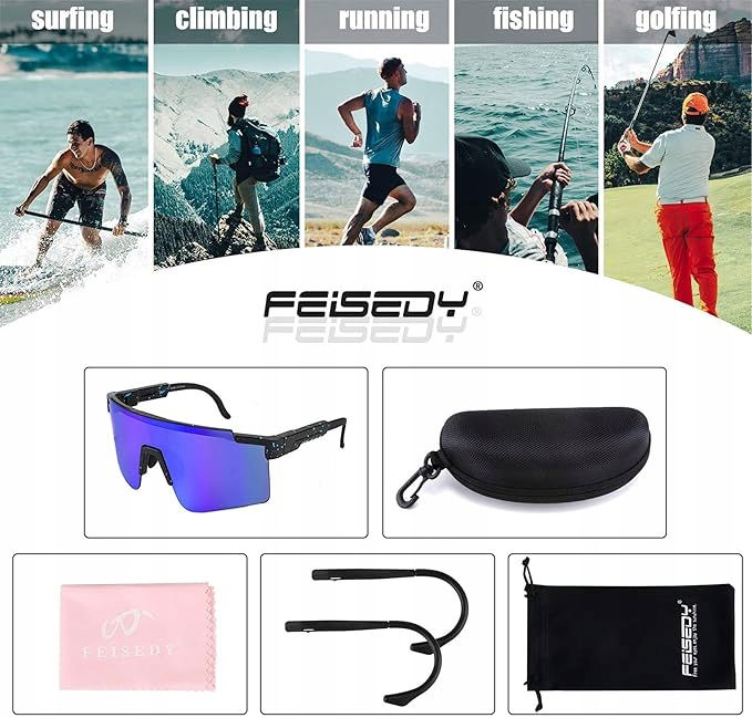 - Szerokie zastosowanie: sportowe okulary przeciwsłoneczne FEISEDY dla mężczyzn i kobiet są idealne do uprawiania sportu i aktywności na świeżym powietrzu, takich jak jazda na motocyklu, jazda na rowerze, golf, bieganie, wędkarstwo, wyścigi, jazda na nartach, wspinaczka itp.