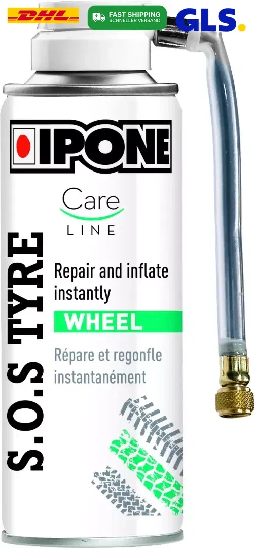 IPONE SOS Tyre Spray to awaryjny środek do tymczasowej naprawy przebitych opon motocyklowych. Produkt jednocześnie uszczelnia przebicie i pompuje oponę, umożliwiając kontynuowanie jazdy do najbliższego serwisu. Jest to szybkie i wygodne rozwiązanie w nagłych wypadkach na drodze.