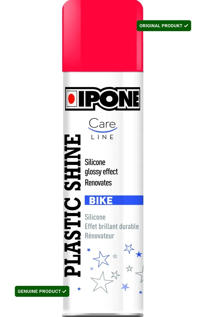 IPONE Plastic Shine to specjalistyczny spray do renowacji i pielęgnacji elementów plastikowych motocykla. Skutecznie czyści, odświeża kolor oraz przywraca oryginalny połysk, tworząc jednocześnie warstwę ochronną przed czynnikami zewnętrznymi. Idealny do kokpitów, owiewek i innych plastikowych powierzchni.