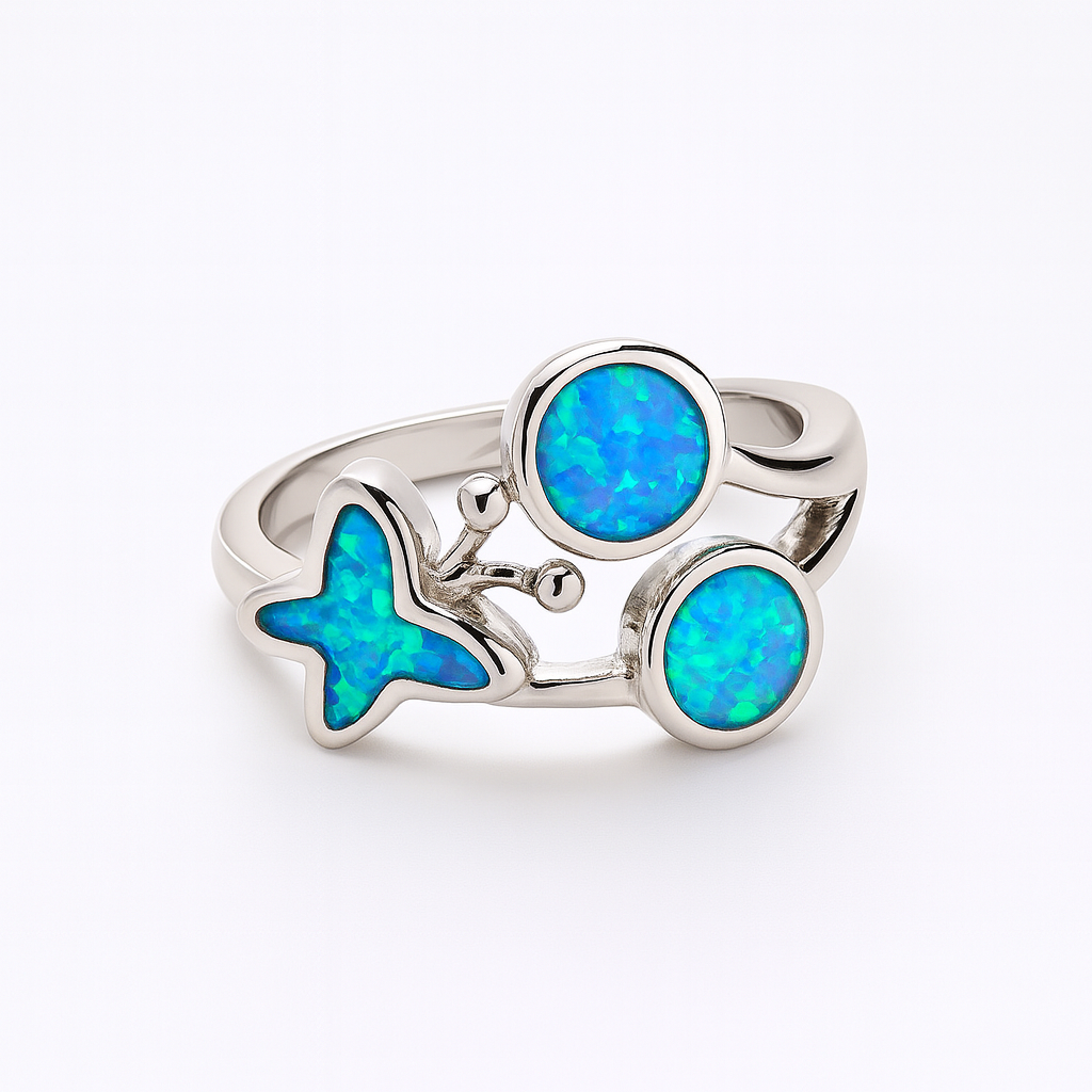 • motyl symbolizuje transformację, lekkość i wolność, a opal intuicję i kreatywność