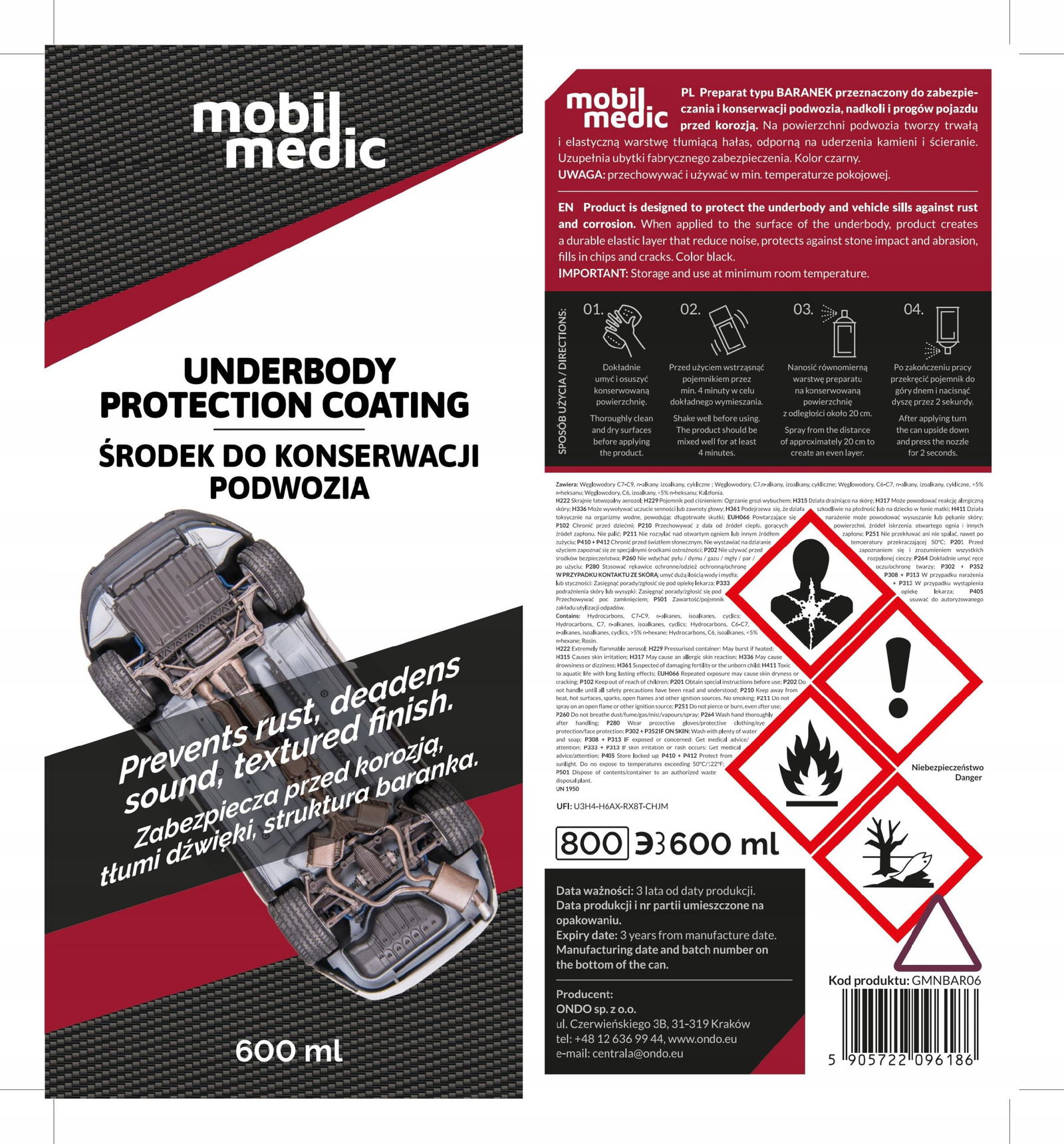 Produkt tworzy na powierzchni podwozia trwałą, elastyczną warstwę, która nie tylko chroni przed uderzeniami kamieni i ścieraniem, ale także tłumi hałas. Efektywnie uzupełnia także ubytki, zwiększając żywotność samochodu.