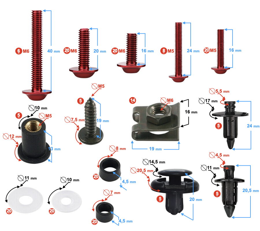 Zasady bezpieczeńśtwa i użytkowania:Śruby owiewek uniwersalne aluminiowe czerwone kod ean 5905220812769