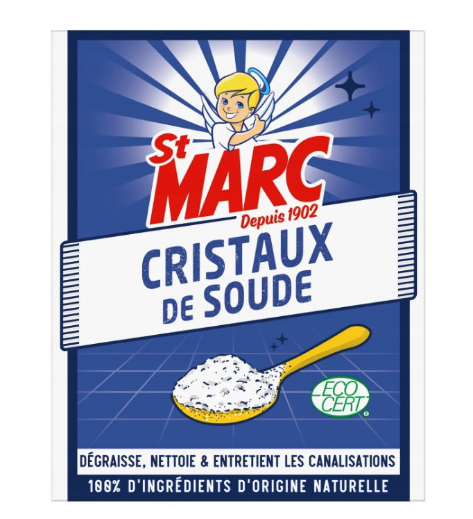 St Marc Soda Crystals to silny środek odtłuszczający i wielofunkcyjny środek czyszczący. Produkt składa się w 100% z kryształków sody, w 100% pochodzenia naturalnego. Są niezbędne do wytwarzania produktów domowych.